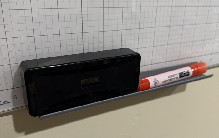 ![]() These trays slip on the bottom of glass boards and are only available in 9.8" lengths. They are 3D printed in USA and cover only a minimal area of your board. Made for both the non magnetic and magnetic glass boards |