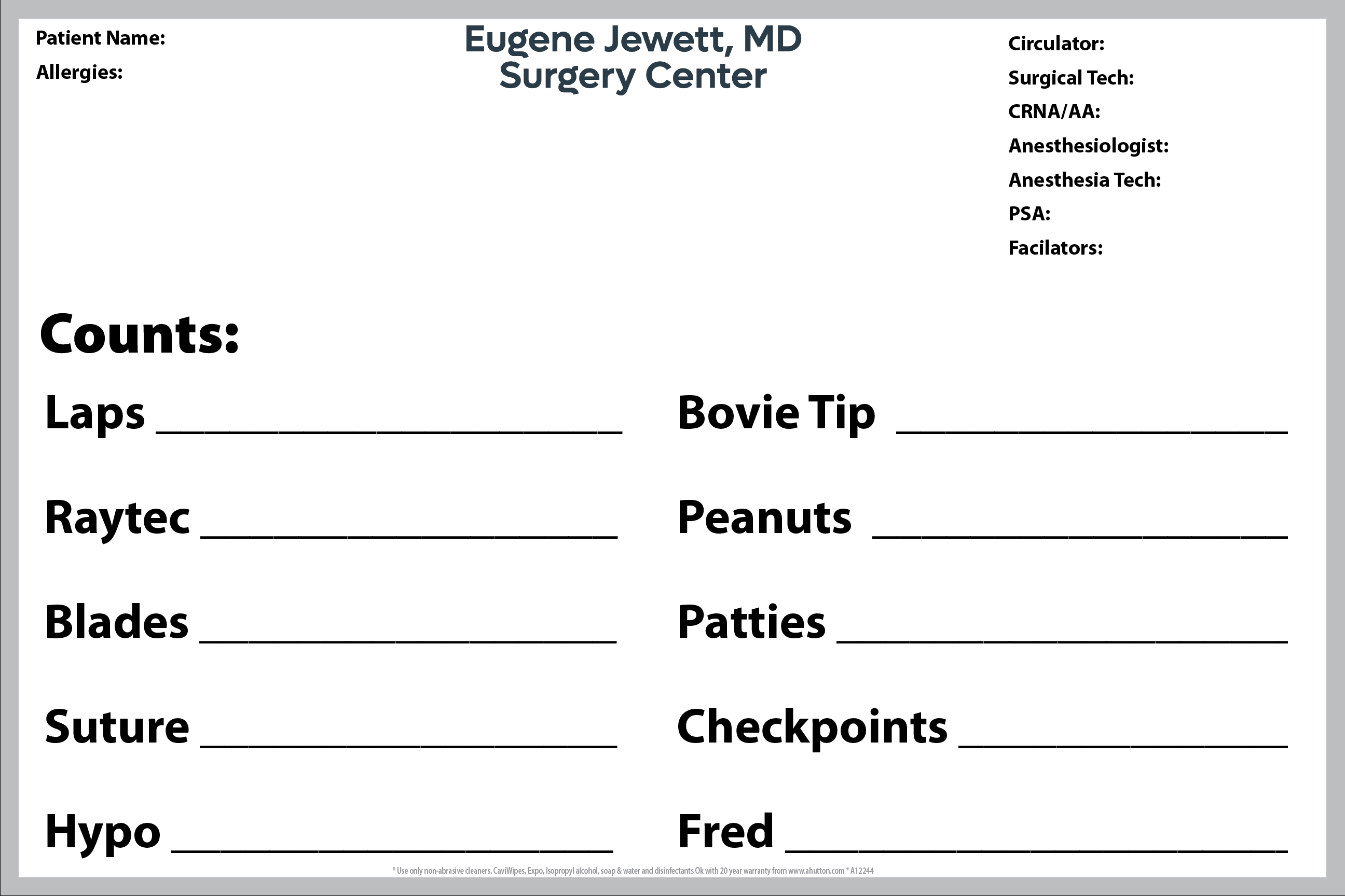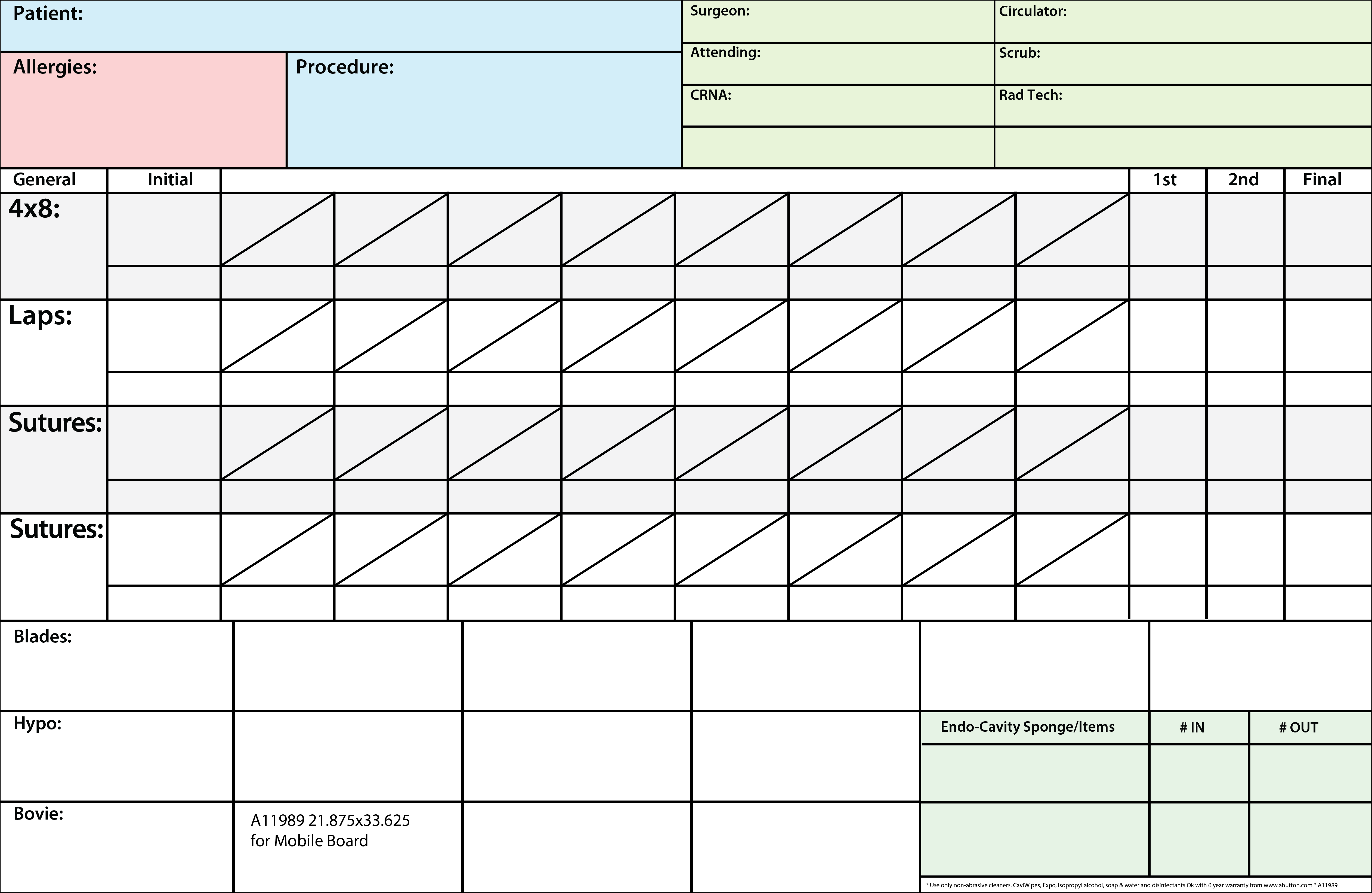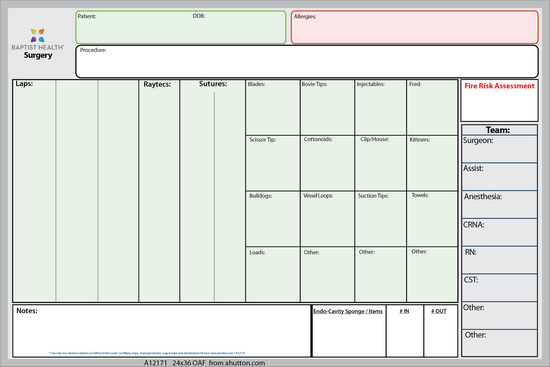 Costs by Size 18"x24" 24"x36" 36"x48" For Count Boards For Surgery & Procedural Checklists For PreOp Surgery For PostOP Surgery for Time-Out Surgery for Fire Risk for IV Pole Mount