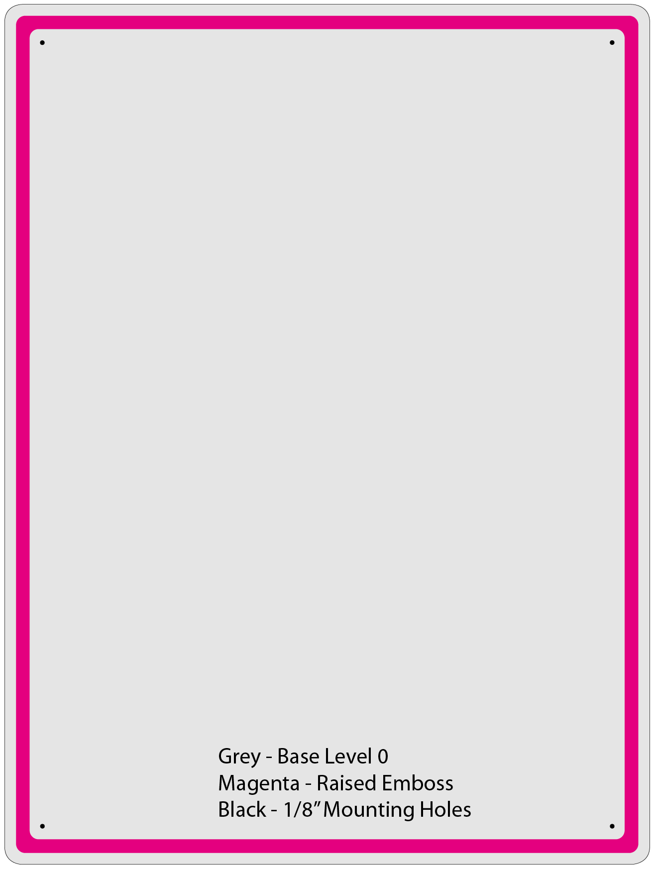 .025 Aluminum (non-magnetic) Corners will be rounded and there will be four 1/8" mounting holes These are more than a steel blank but do not need a frame! this also can be done mostly in black and then are great to mark on with fluorescent markers and other products designed to mark glass like surfaces ======> see Black Markers Can also can be stamped to a shape as in speedway sign below CGWA Size Page weight approx .37# / ft2 |