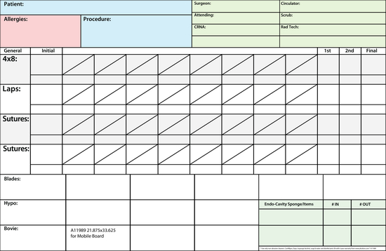 Costs by Size 18"x24" 24"x36" 36"x48" For Count Boards For Surgery & Procedural Checklists For PreOp Surgery For PostOP Surgery for Time-Out Surgery for Fire Risk for IV Pole Mount